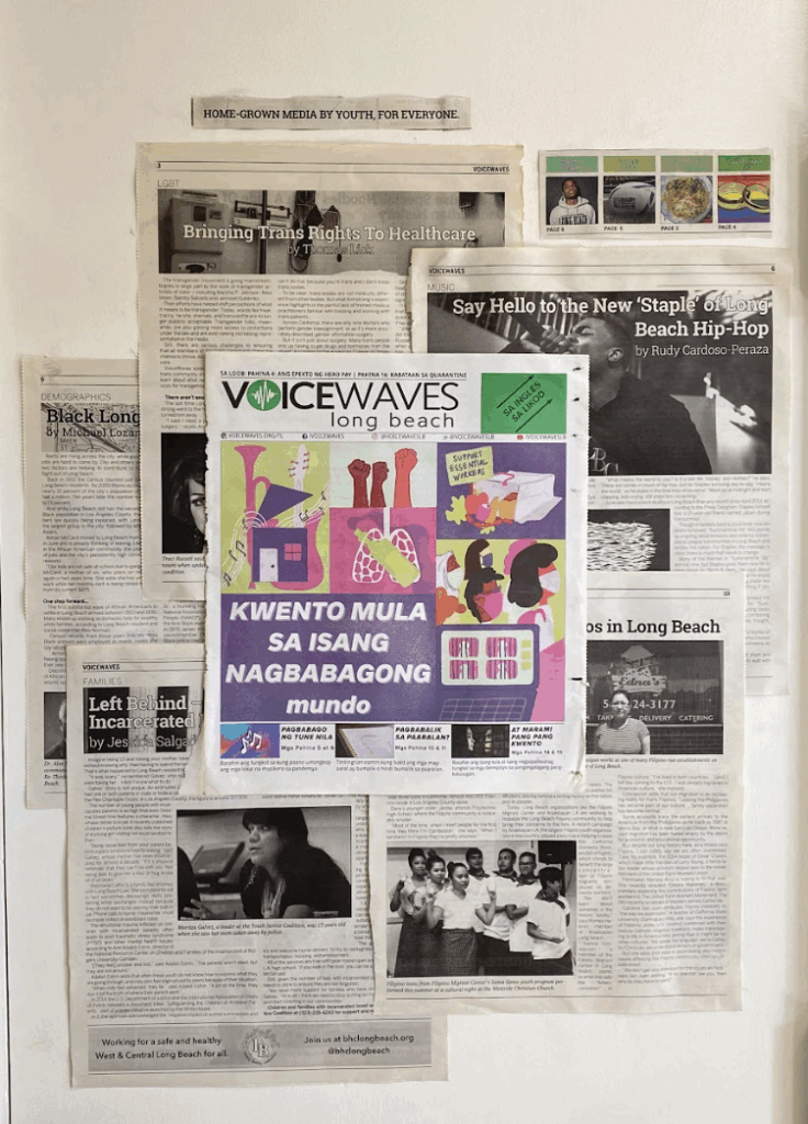 VoiceWaves crea un espacio liderado por jóvenes donde sus experiencias de vida se reconocen como conocimiento especializado, permitiéndoles recuperar el control y transformar las narrativas dominantes sobre temas cruciales en Long Beach y más allá. Los jóvenes participan en capacitaciones de incidencia política y talleres de medios digitales que les brindan las herramientas para usar la narración como motor de cambio social. A través de mentorías individuales, proyectos colaborativos en equipo y acceso a equipo profesional, crean contenido original: desde cortometrajes y ensayos fotográficos hasta campañas en redes sociales y más de 1,000 fanzines distribuidos por toda la ciudad. Mediante este trabajo creativo, tienen la oportunidad de reimaginar mundos más justos y visibilizar prioridades comunitarias urgentes que impactan directamente su vida diaria, como la salud mental, la justicia climática, la defensa de los derechos LGBTQ+, los derechos y la seguridad de los inmigrantes y las oportunidades para la juventud.